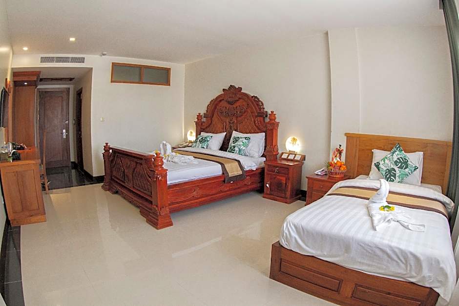 Guests will have a special experience as this triple room provides a hot tub, a spa bath and a fireplace. The spacious air-conditioned triple room offers a flat-screen TV, a mini-bar, a tea and coffee maker, a wardrobe as well as city views. The unit has 3 beds.